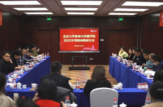 2月19日,北京大学新闻与传播学院在中关新园召开2023年寒假战略研讨会议,集体学习学校寒假战略研讨会精神并部署新学期各项工作。本次会议主题为“凝心聚力,传承创新,开拓进取,加快建设世界一流新闻传播学科”。北京大学国际合作部部长李昀、教务部副部长刘建波、社科部副部长郭琳等相关职能部门负责人到会进行工作指导。学院院长陈刚、党委书记唐金楠、副院长陈开和、王维佳,党委副书记卢亮等领导班子成员、全体教师参加会议。上、下午会议分别由唐金楠、陈刚主持。