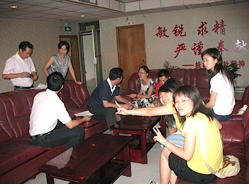 2007年7月8日晚,徐泓老师为赴桂林日报社的实习团队召开实习“战前会”。徐泓老师简要介绍了桂林报业集团的情况,并要求同学们在实习中“了解社会,认识国情”。同学们个个都已兴奋不已,忙着为实习的旅途打点行装。