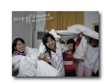 夜间回到宿舍,由于被子全部是潮的,在我的提议下一群女生扛着被子在空调前吹热风,ws形态层出不穷,笑声响彻清冷的女寝。一番折腾之中,我举起相机为众mm留影,众人看到自己的ws样子闯进镜头,笑声更是以摧枯拉朽之势爆发出来。而一行14人的桂林实习生活,也在这笑声当中正式拉开了帷幕。