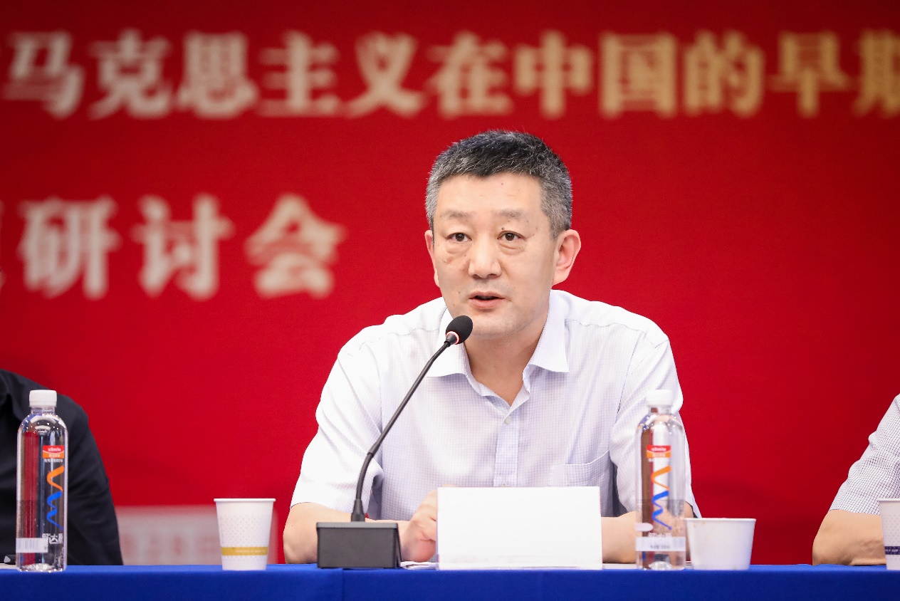 北京大学新闻与传播学院院长陈刚以《北京大学新闻学研究会的三个思考》为主题,梳理了北京大学新闻学研究会的发展历史,指出北京大学新闻学研究会不仅是中国最早的新闻学术团体,更是中国新闻专业教育的发轫,同时,为马克思主义在中国的早期传播培养了专业人才,促进了思想的交流。在此基础上,他提出关于深化北京大学新闻学研究会研究的三个思考:第一,北京大学新闻学研究会对党的早期创始人的影响;第二,北京大学新闻学研究会与共产党早期组织的关系;第三,北京大学新闻学研究会与“五四运动”的关系。陈刚表示,希望通过此次研讨会,共同深入推进关于北京大学新闻学研究会和马克思主义在中国早期传播的研究,以专业建设推动学习贯彻习近平新时代中国特色社会主义思想主题教育。