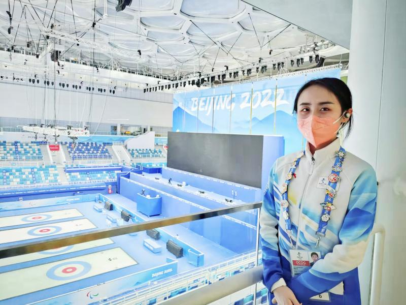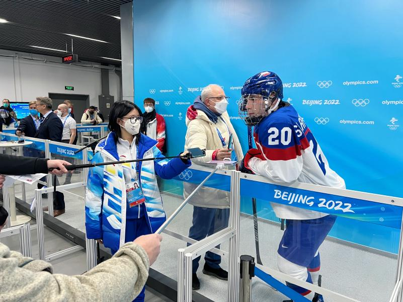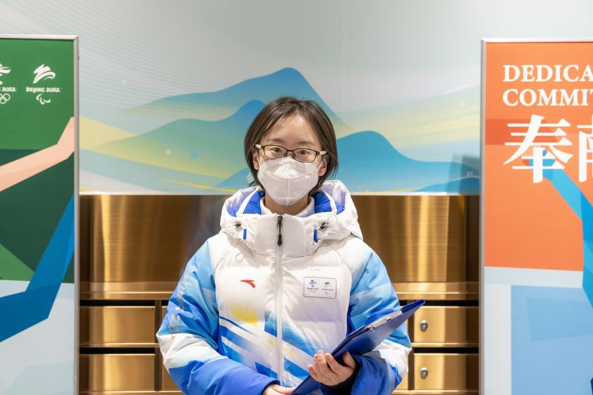 冬奥会最后一场冰球比赛即将开始,郭雯雯已经在国家体育馆的新闻混合采访区准备就绪。作为混合区助理,她主要负责维持采访区秩序,保证记者能够在赛后对运动员进行即时采访,撰写体育新闻。作为一个体育迷,成为一名优秀体育记者的梦想推动着郭雯雯成为北京冬奥会媒体领域的专业志愿者。从专业培训到赛时工作,深入新闻生产一线也让她对媒体工作有了更深的体悟。“从一名观众成为一名奥运深度参与者,我期待能做出对社会、国家形象有帮助的事情。”