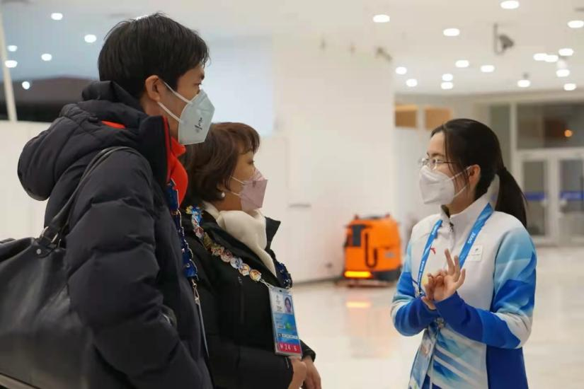 日本留学生福川美希结束了她在冰立方南广场的最后一班站岗,在入口处偶遇一位来自日本的全球合作伙伴成员,他因英语沟通不顺利而遇到一些问题。尽管已经不在工作时间,但作为赛事服务志愿者的她主动上前进行中日文翻译,陪同并帮助日本来宾顺利完成相关工作。“我的工作岗位日常接触的都是中国观众,没想到在最后一次工作后用上了日语技能。志愿服务是持续不断而非定时结束的,去做志愿工作慢慢成为我的一种习惯、一种自觉。”时刻准备好以最真诚的微笑迎接来自五湖四海的客人,这是冬奥志愿者展现的中国态度。