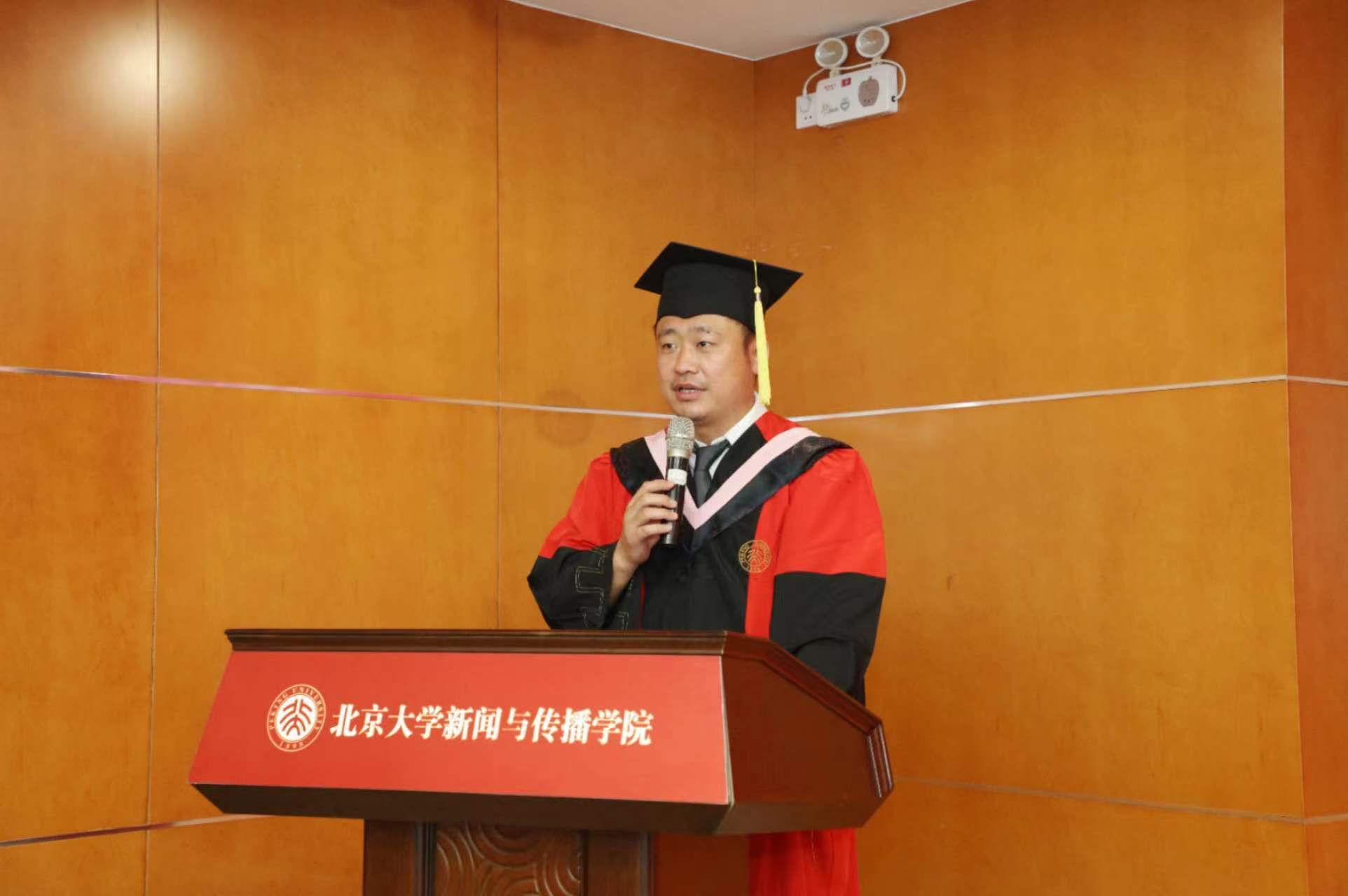 2020级硕士毕业生代表王刚在发言中指出,不确定性成为在疫情时代最能确定的事情,而此间的北大新传人仍然能够有序地开展学习生活,参与党和国家的重大活动,得益于学校学院等各方的不懈努力。与时代同频共振的新传学子,更应意识到自己与社会的紧密关联,明晰传播责任、发挥专业才能,将现实关切融入到个人选择中。无论是扎根基层服务民生,还是潜心科研精进学术,时间地点不应成为青春理想的限制,应让未名博雅的底色在广阔的社会生活中彰显。