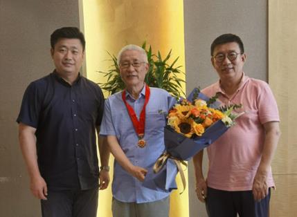 唐金楠、陈刚向关世杰老师颁发纪念章