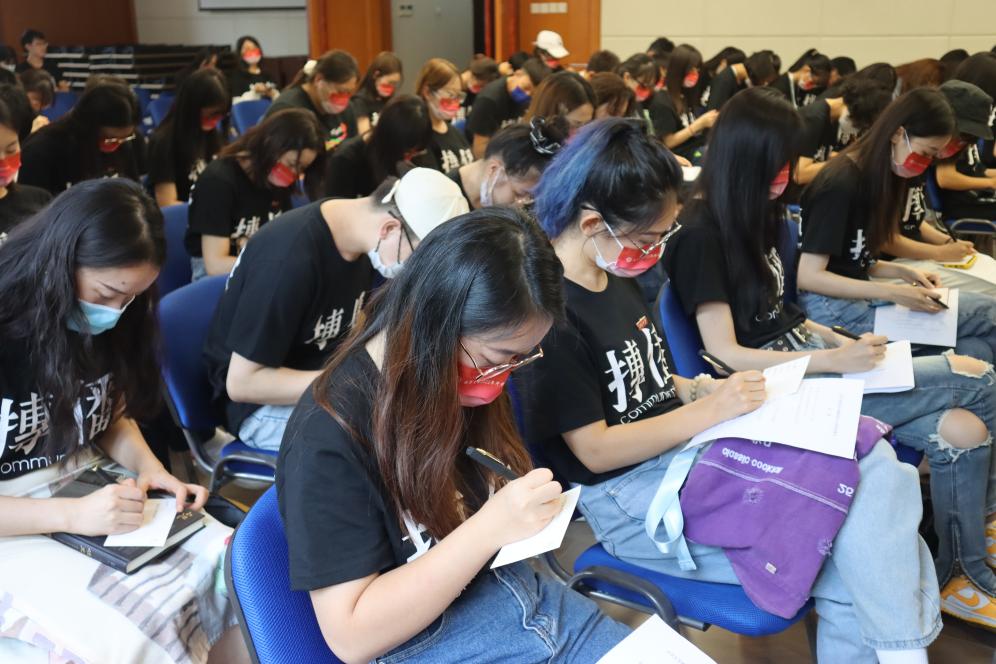 在为未来绘图活动中,各位新生同学手持明信片与传播画笔,将自己对于未来的期待与畅想以书面的形式留存,理想在这一刻插上了翅膀。