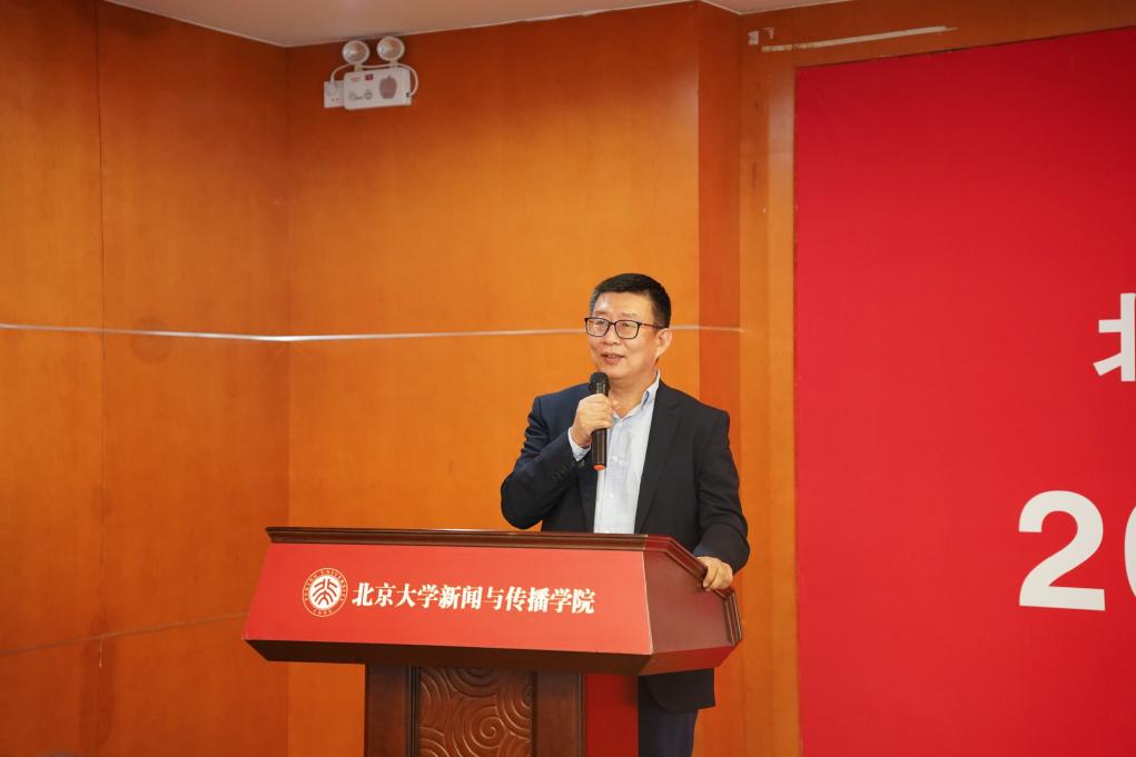 陈刚从拥抱大时代、树立大志向、成就大格局三个方面引导新生展开思考。他表示,当今世界正经历百年未有之大变局, 同学们生逢其时,站在“两个一百年”的历史交汇点上,要把握后疫情时代的全球格局思考未来。每一个时代都应有一批人跳出生活的琐碎,超越小我,超越时代,去思考更深层次的问题,这是北大人一直以来的精神传承,同学们要树立大志向,让青春在时代浪潮中彰显价值。陈刚表示,身处大时代也意味着面临前所未有的机遇,基于数字化变革、社会的发展,中国特色社会主义新时代新闻传播理论创新与建构,北大新闻传播学院应该做出更大贡献。他劝勉同学们要成就大格局,致力于做新时代新闻传播学科成果的创造者、发展的引领者,成长为国家的栋梁,全球的精英。