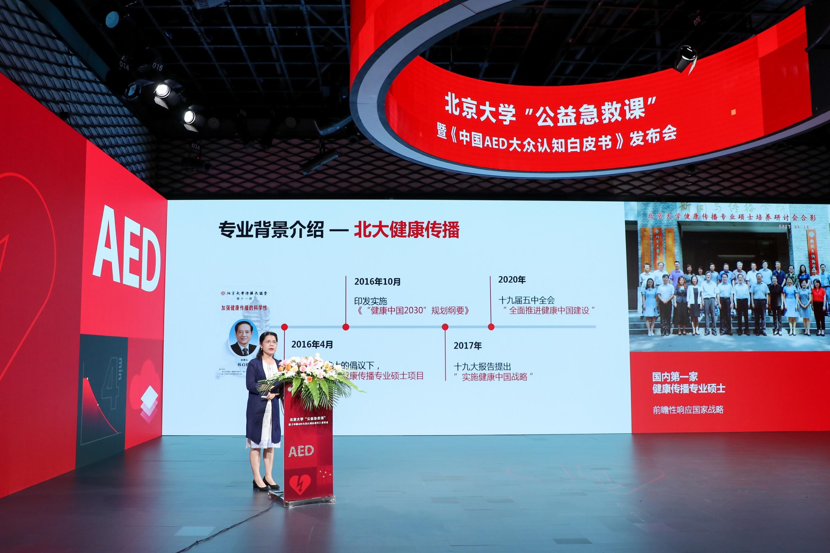 北京大学新闻与传播学院教授,北京大学健康传播专业硕士项目主任许静老师进行了《健康传播助力健康中国—AED 案例研究》的主题演讲。