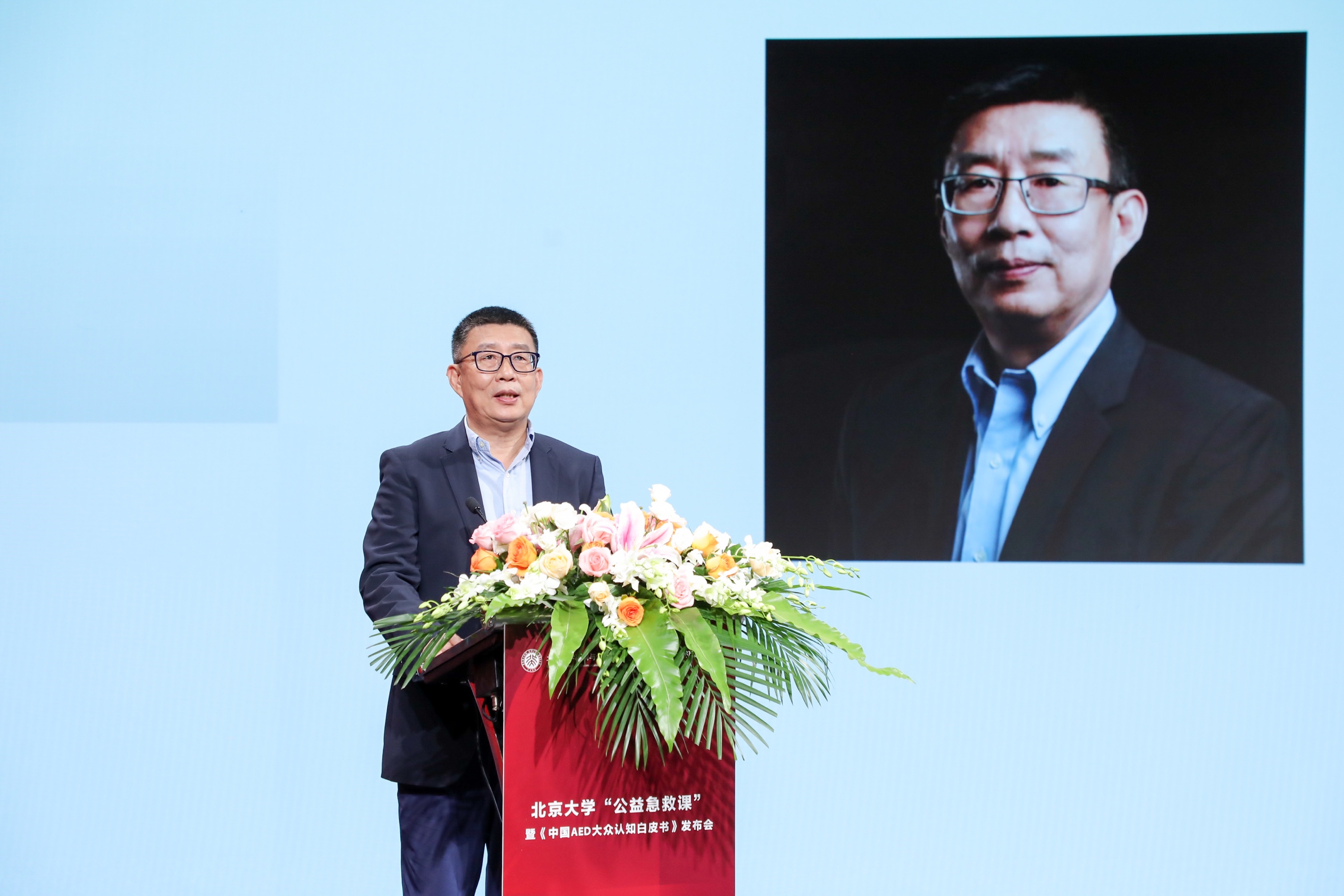 北京大学新闻与传播学院院长陈刚教授致开场词,他指出,当前关于我国心脏骤停的公共安全急救,无论是医疗应急设备配置,还是医疗应急设备的方法培训与普及教育都还有很大的提升空间。AED推广和普及不仅需要热情和奉献,更要多方资源的支持,建立起政府、学校、业界和整个社会共享共建的急救体系。他希望通过此次活动,吸引更多的组织和个人参与AED急救知识的普及和推广,助力健康中国。