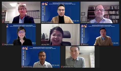 11月5日,由北京大学新闻与传播学院主办、新加坡国立大学传播与新媒体系协办的第五届“医疗、人文与媒介”健康传播国际学术研讨会(The Fifth International Conference of "Medicine, Humanity and Media" ,MHM 2022)在云端顺利召开。本届研讨会的主题为“重新思考全球健康与传播”,来自美国、英国、新西兰、加拿大、新加坡等地的海外著名学者和国内健康传播学界知名专家十余人、会同来自全球各地高校及科研机构的六十余位投稿发言人一同云聚线上,在新冠肺炎疫情等全球公共卫生危机深刻影响和改变健康传播研究议程的背景下,集智献策,一同重新探讨全球健康与传播。