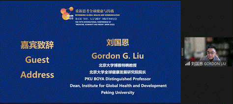 最后,北京大学博雅特聘教授、北京大学全球健康发展研究院院长刘国恩发表了英文致辞。刘国恩表示,本届研讨会的主题与北大全球健康发展研究院“同一个世界、同一个健康”的使命共享了相同的愿景。刘国恩从卫生经济学家的角度,分享了三个关于全球健康与传播的观点。一是医学的作用,从科学的观点来看,战胜全球范围内的疫情大流行,最有希望的办法就是研制有效的疫苗。幸运的是,在全球科学界的共同努力下,2020年底新冠肺炎疫苗成功上市,而所有这些进步都离不开全球及时、透明地开展医学科学和信息交流的努力,其中学术渠道和社交媒体都在发挥着重要作用;二是关于人文和媒体的作用,尽管国际社会在医学方面取得了前所未有的进步,但是仍未摆脱传播与沟通不畅带来的诸多问题,在建立互信和传播共同价值方面,人文与媒介肩负重要使命。三是关于疫情大流行中的差异与鸿沟的问题,刘国恩呼吁媒体能够更好地关注弱势群体、贫困国家与区域,进一步优化疫情之下的政策与公共财政支持。最后他希望参与本届研讨会的各位代表,能够投身建立起一个传播更为通畅、合作更好实现的世界,共塑一个更加美好、有韧性和更具包容性的未来。