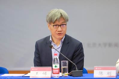 王博代表北京大学对各高校新闻与传播学院领导、专家学者的到来表示热烈的欢迎,对各兄弟院校长期以来给予北京大学的支持和帮助表示感谢。他指出,交流会以新闻与传播学科双一流建设创新发展为主题,既是学习贯彻党的二十大精神和习近平总书记关于哲学社会科学工作的重要论述的实际行动,也是对新闻传播学科在中国式现代化发展发展中如何发挥更大的作用这一时代命题的主动回应。希望大家紧紧围绕建构中国特色、世界一流新闻传播学科这一话题深入交流,在中国特色社会主义新闻理论研究与数字时代传播学理论方法探索的基础上,推动自主知识体系建构,共同为中国式现代化发展进程中的新闻舆论宣传提供强大智力支持和人才支撑。