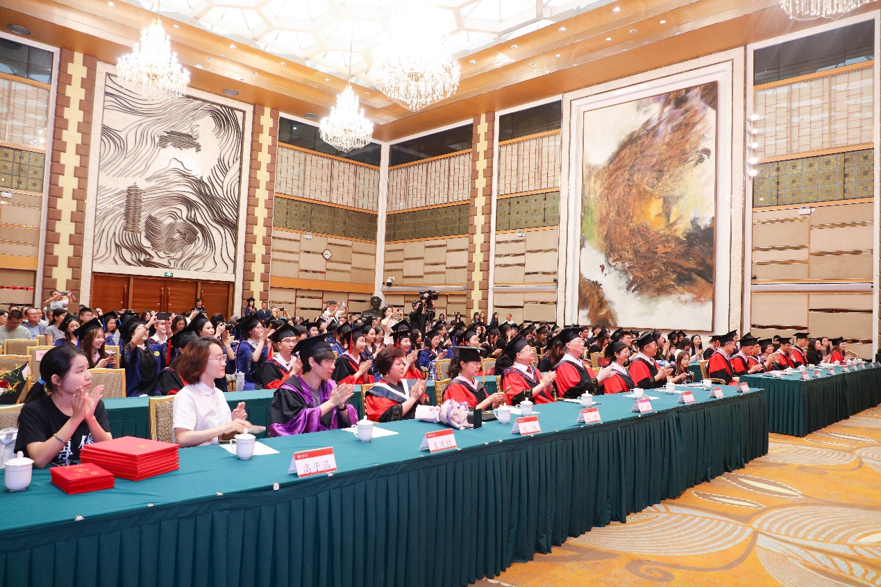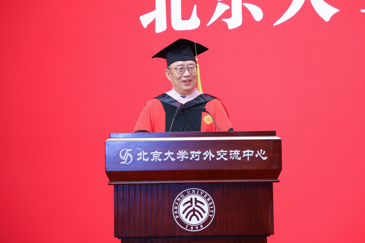 陈刚为毕业生致辞。他呼吁同学们以更长远的时空维度审视人生旅途,将青春的经历视做成长的阶梯,努力探寻自身能力与时代趋势的契合点。谈及历史发展带来的机遇时,陈刚指出,在人工智能重塑生产关系的数字社会发展浪潮中,要准确把握系统性变革所带来的挑战与机遇;在迈向中华民族伟大复兴的征程上,应当以青春力量肩负起强国建设的重任;更要在全球局势风云变幻之际,通过讲好中国故事、深化文明互鉴,为构建人类命运共同体贡献力量。他强调,新闻传播学科始终是推动社会变革的核心力量,北京大学新闻与传播学院的学术积淀,将永远为学子发展提供坚实支撑。最后,他期待大家树立远大志向,不断地提升自己,探索创造性地解决问题的能力,在社会发展的大舞台上,有所建树,有所贡献,不负时代,不辱使命。