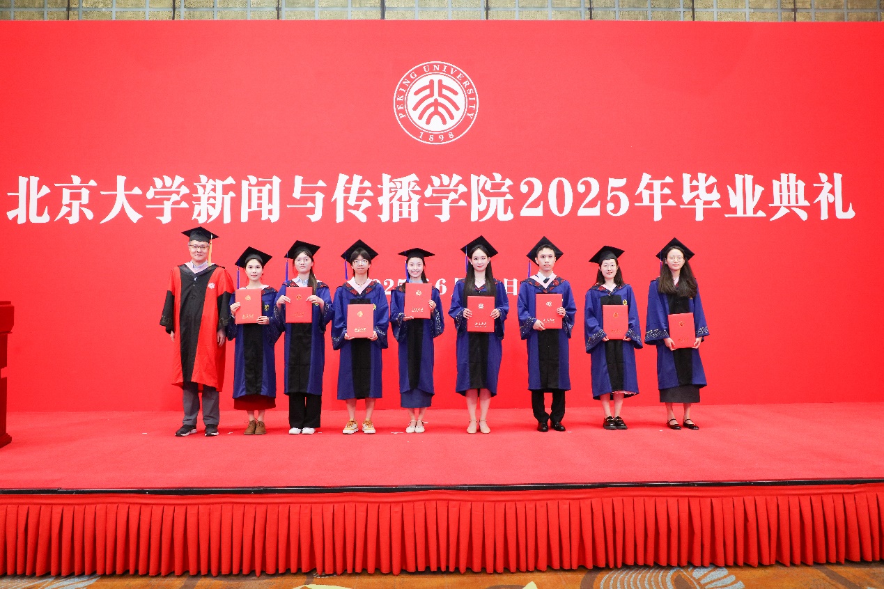 6月30日上午,北京大学新闻与传播学院2025年毕业典礼在英杰交流中心阳光厅举行。新闻与传播学院院长陈刚,党委书记田丽,副院长陈开和,党委副书记卢亮,陆绍阳、程曼丽、陈汝东、胡泳、师曾志、许静、何姝、王洪喆、王天夫、刘金河、刘心怡、高子涵等教职工,院友代表、北京邮电大学数字媒体与设计艺术学院长聘教授赵晓航,以及2025届毕业生和部分毕业生家长参加典礼。典礼由田丽主持。