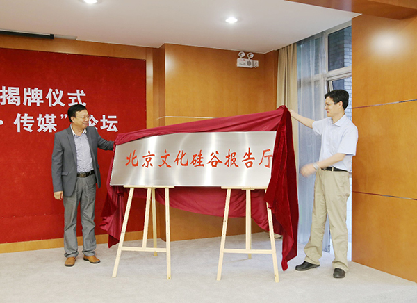 2014年6月6日14:00,新闻与传播学院在新大楼蒙民伟楼举行“北京文化硅谷报告厅”揭牌仪式。北京大学常务副校长刘伟教授、北京沃德文化硅谷资产运营有限公司总裁王铭铎、副总裁徐小勇、副董事长于鹏,北大教育基金会项目部部长张勇等出席仪式。学院院长陆绍阳教授、党委副书记王洪波、副院长俞虹教授、吴靖教授以及师曾志教授等同50余名师生代表一起,共同见证这一学院历史上的重要时刻。仪式由学院党委书记、副院长陈刚教授主持。