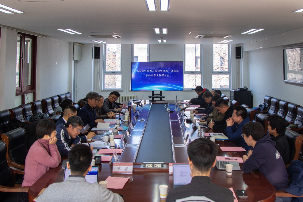 2022年2月9日,北京大学新闻与传播学院举行学科建设改革发展研讨会,邀请校内外专家就北大新闻传播学科建设进行深入交流研讨。北京大学副校长王博、中国社会科学院新闻与传播研究所所长胡正荣、中国人民大学副校长胡百精、中国传媒大学新闻学院院长隋岩、北京大学学科建设办公室主任王新强出席会议。新闻与传播学院院长陈刚,党委书记唐金楠等党政领导班子成员,院学术委员会成员及教师代表参加会议。会议由唐金楠主持。