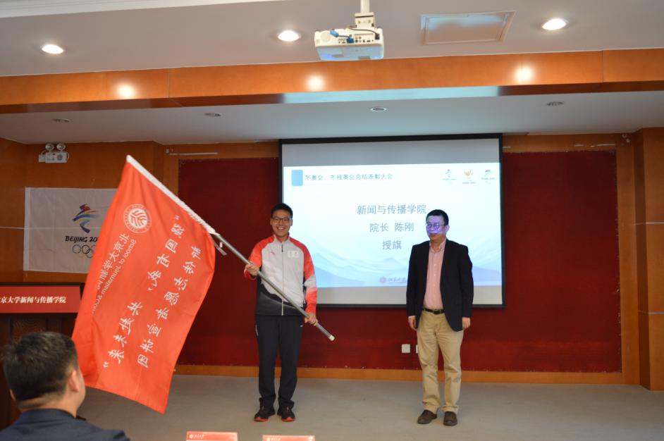 为充分发挥模范带头作用,用实际行动宣讲好、践行好胸怀大局、自信开放、迎难而上、追求卓越、共创未来的北京冬奥精神,学院决定成立“强国有我,共赴未来”新传志愿者宣讲团。陈刚为宣讲团授旗。
