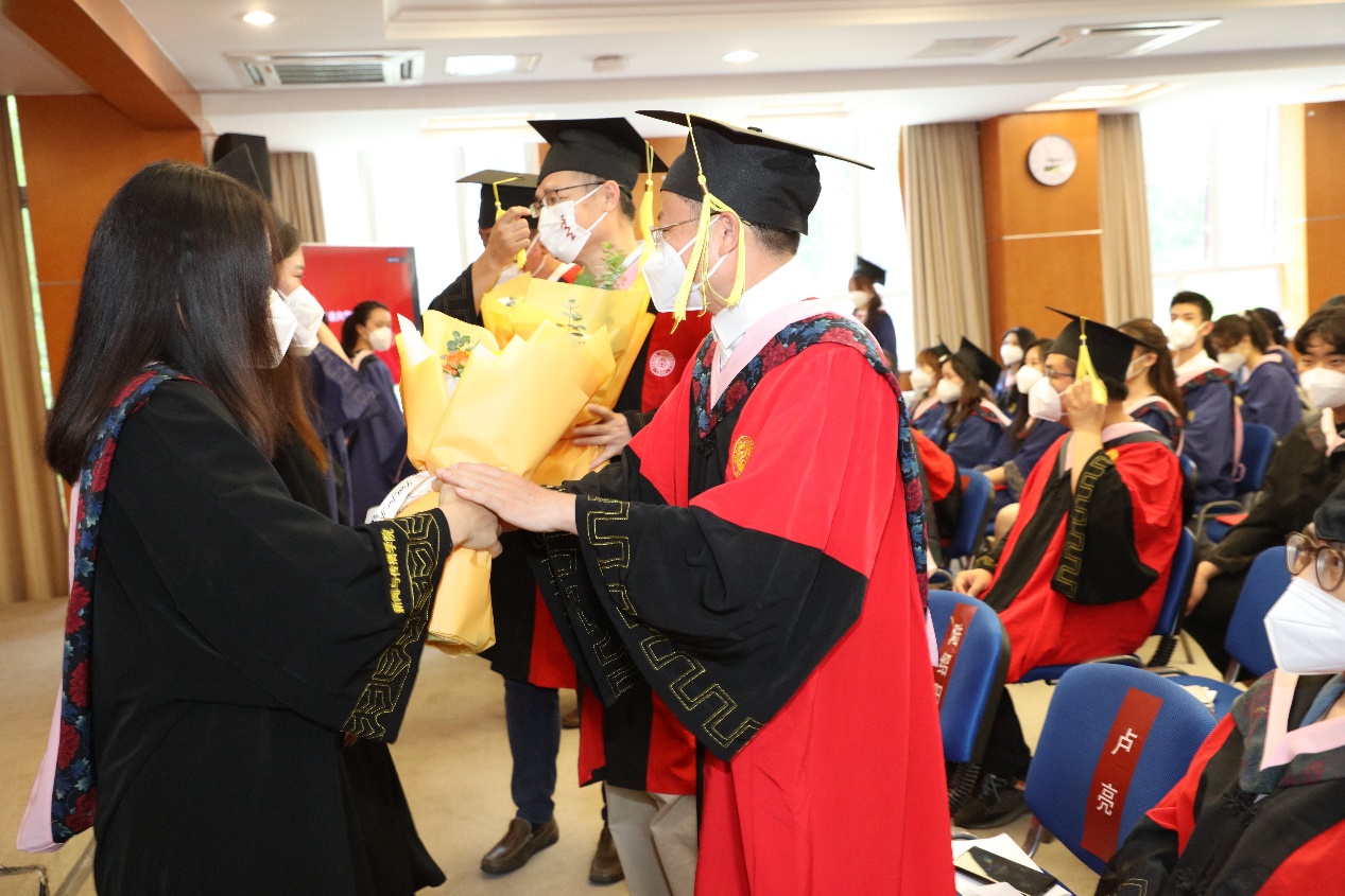十余寒窗,春晖寸草无以报。临别之际,毕业生向老师献花,将四年来对老师言传身教的感激融进声声感谢。学院也为毕业生精心准备了礼物,将南门树影中的蒙民伟楼定格入册作为留念,表达对学子们的殷殷期盼与美好祝愿。