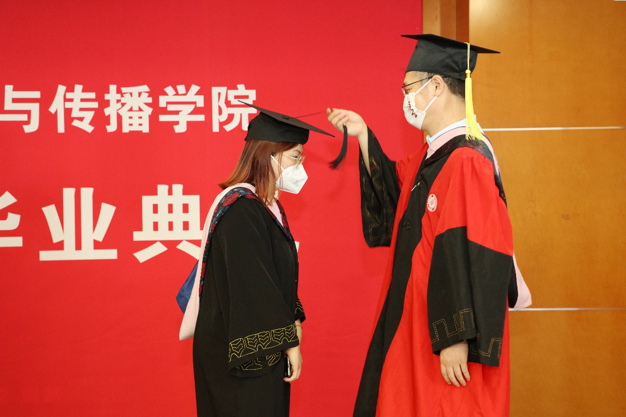 唐金楠为优秀硕士学位论文获奖同学颁发证书,并为毕业生送上寄语。在同学们即将踏上人生新旅途之际,他送给大家三个“朋友”——时间、生活与世界。时间是公平的,看似平凡但实际蕴藏着无穷的力量,如何用好时间成就他人也成就自己是每个人一生的必修课。生活是多样的,热情去拥抱、乐观去面对人生顺逆才能尝得勃勃生命的百味回甘。世界是变化的,当下及未来的传播学有无限的探索空间,新传人要能学于变、用于时、传于世,牢记知行合一,抓紧机遇去改变世界。