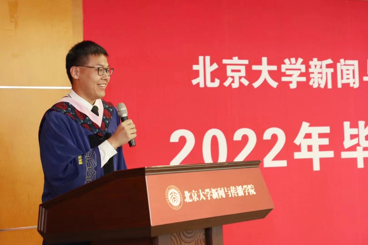 2020级硕士毕业生代表王刚在发言中指出,不确定性成为在疫情时代最能确定的事情,而此间的北大新传人仍然能够有序地开展学习生活,参与党和国家的重大活动,得益于学校学院等各方的不懈努力。与时代同频共振的新传学子,更应意识到自己与社会的紧密关联,明晰传播责任、发挥专业才能,将现实关切融入到个人选择中。无论是扎根基层服务民生,还是潜心科研精进学术,时间地点不应成为青春理想的限制,应让未名博雅的底色在广阔的社会生活中彰显。