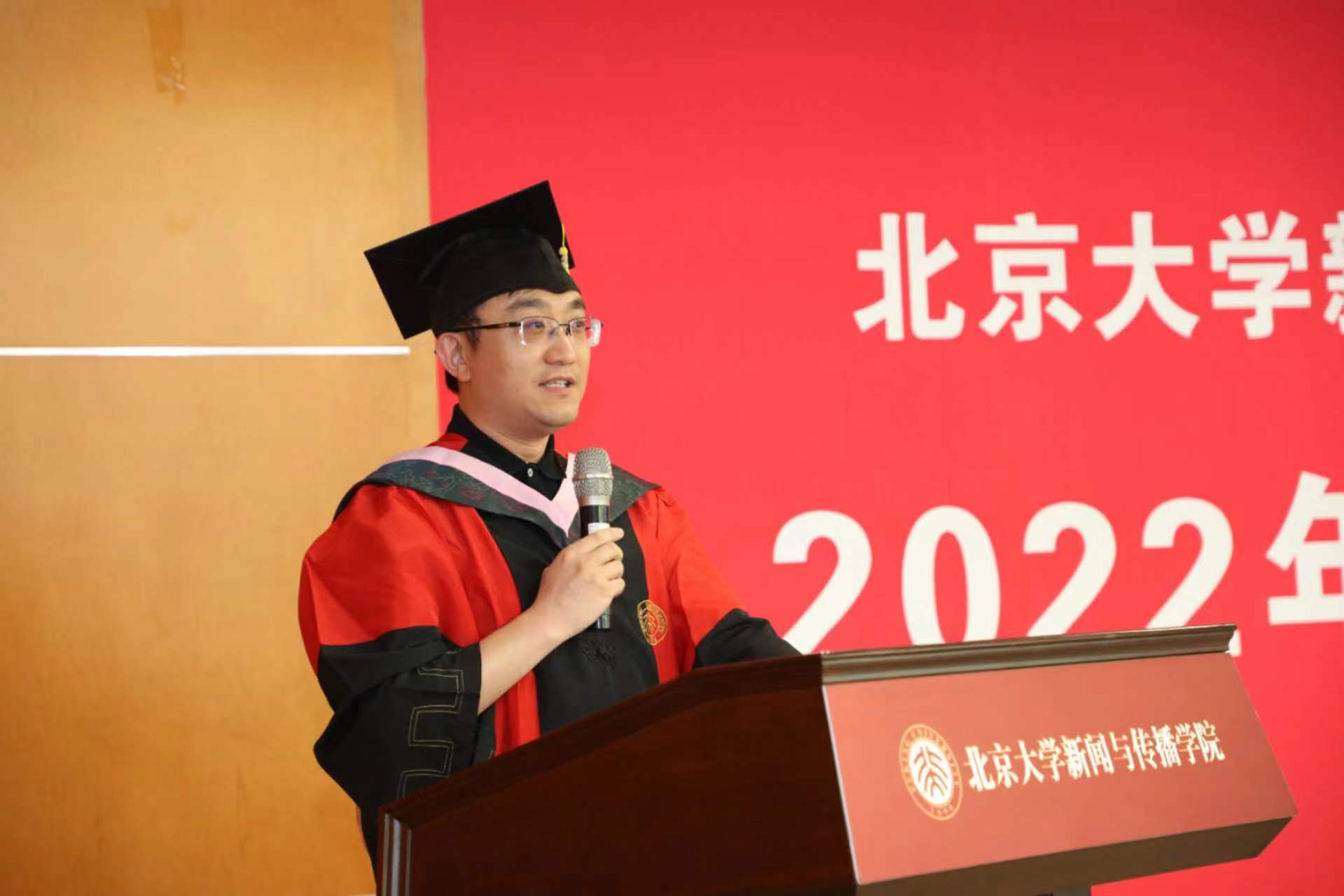 2020级硕士生班主任张慧瑜作为教师代表为毕业生送上祝福与勉励。他希望同学们能以长远的眼光和开阔的胸襟拥抱生命的波澜,踏踏实实做事、认认真真发声,勇于在不怕失败的尝试中谋新路,而不为一时一地的得失所困。无论何时何处,都不能丢了北大新传讲求尊重、提倡包容的本色,要守好乐于沟通的同理心,养好求同存异的宰相肚,始终把“将心比心、推己及人”刻在行稳向前的基石上。