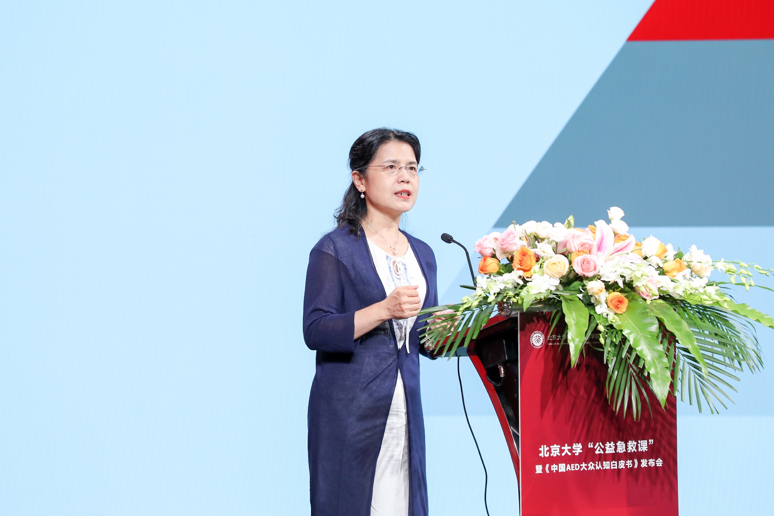 北京大学新闻与传播学院院长陈刚教授致开场词,他指出,当前关于我国心脏骤停的公共安全急救,无论是医疗应急设备配置,还是医疗应急设备的方法培训与普及教育都还有很大的提升空间。AED推广和普及不仅需要热情和奉献,更要多方资源的支持,建立起政府、学校、业界和整个社会共享共建的急救体系。他希望通过此次活动,吸引更多的组织和个人参与AED急救知识的普及和推广,助力健康中国。