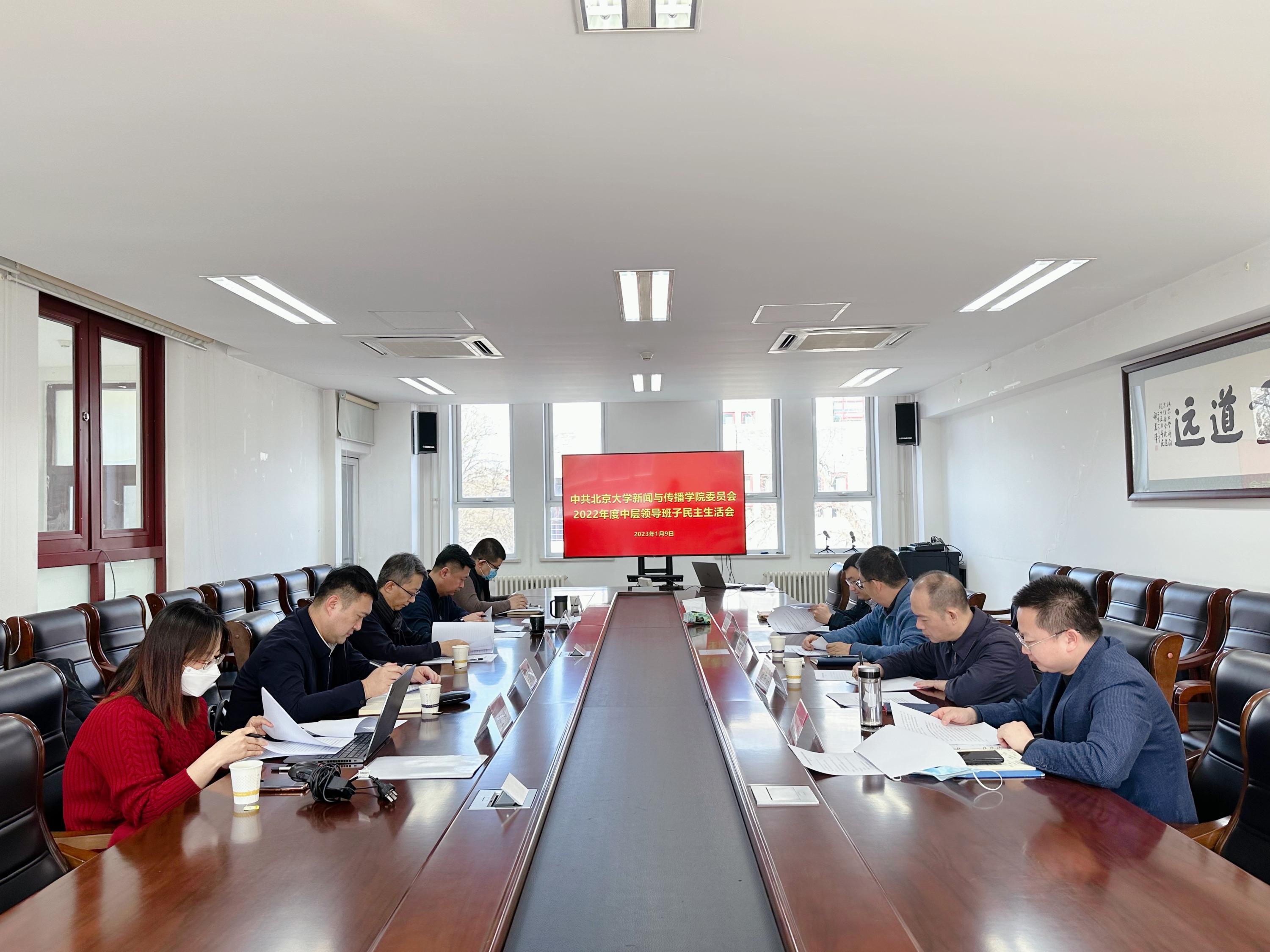 唐金楠汇报了民主生活会前期筹备情况。在收到学校党委《关于认真开好2022年度中层领导班子民主生活会的通知》后,新闻与传播学院党委第一时间作出安排部署,制定工作方案,明确具体要求,扎实做好各环节工作。学院领导班子邀请专家学者作党的二十大精神专题辅导报告,并组织领导班子进行专题学习研讨,系统学习《北京大学2022年度中层领导班子民主生活会学习材料》中的文献资料,筑牢理论之基;广泛征求意见建议,通过单独谈话交流、在学院大厅放置征求意见箱等多种方式,广泛听取党员干部和师生员工的意见建议,营造良好氛围;深入开展谈心谈话,学院党委书记、院长带头,班子成员按照“四必谈”的要求,开诚布公,坦诚相见;认真进行对照检查,学院党委书记主持起草领导班子对照检查材料,组织集体研究,班子成员认真撰写个人对照检查材料,学院党委书记逐一审阅,深入自我检视、自我剖析。