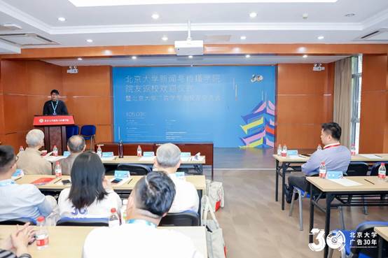 1993年5月3日,经教育部批准,北京大学正式在艺术教研室设立广告学专业并开始招生。2001年北大成立新闻与传播学院后,广告学专业整体转入新闻与传播学院。1993年,彭吉象教授时任艺术教研室主任,对广告学专业的设立功不可没。在欢迎仪式致辞中,彭吉象教授回顾了广告专业创立的过程、北大新闻与传播学科与北京大学美育教育的历史,对广告学专业的发展成就表示高度肯定。