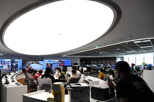 下午2时,北京大学师生一行抵达人民日报社。参访队伍首先来到人民日报全媒体指挥调度中心——“中央厨房”。通过听取工作人员对“中央厨房”组织架构、运行机制以及新闻大数据系统的介绍,师生们深入了解了人民日报社打通“报、网、端、微、屏”各种资源、实现全媒体传播的全过程。作为面向受众、面向国际、面向未来的新一代内容生产、传播和运营体系,“中央厨房”以内容的生产传播为主线,实现了“一次采集、多元生成、多渠道传播”,为整个媒体行业搭建了支撑优质内容生产的公共平台。