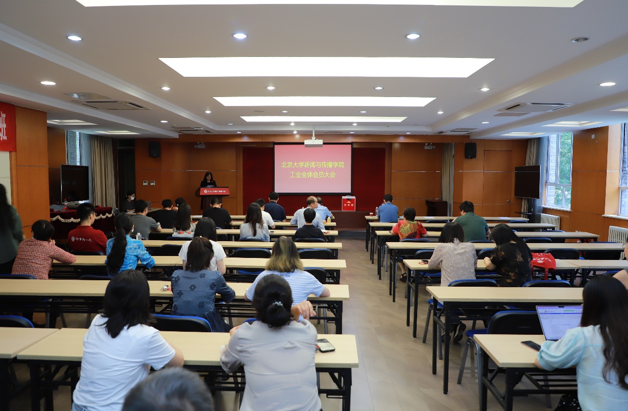 2023年6月7日中午,北京大学新闻与传播学院在学院报告厅组织召开第三届工会会员大会,选举产生学院第三届委员会。校工会常务副主席张宝岭出席会议,学院党政班子成员,以及40余名工会会员参会。大会由学院第二届工会委员会副主席、院长助理王玮主持。