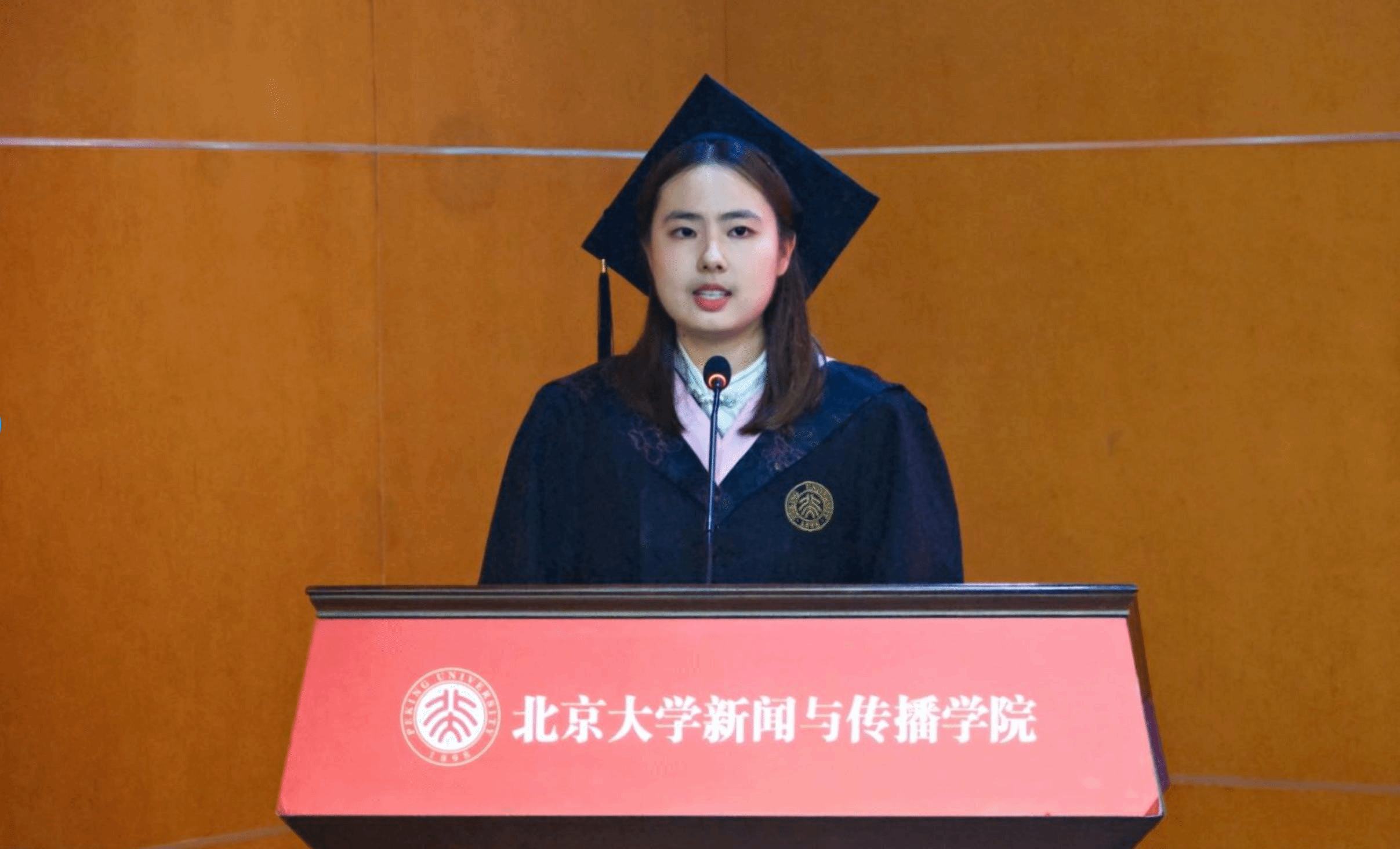 2019级本科生赵绮萱代表本科毕业生发言。她回忆了四年间燕园生活的点滴,用真挚的言语表达了对学院师长的感谢。赵绮萱表示,新传多元自由的培养环境给予她自由探索、多维发展的机会;北大人的精神底蕴带给她整装前行、扬帆起航的力量。“累学至功进,新船将远航”,她希望同学们始终保持着对生活的好奇与热爱,保有锐气,胸怀勇气,向未来进发。