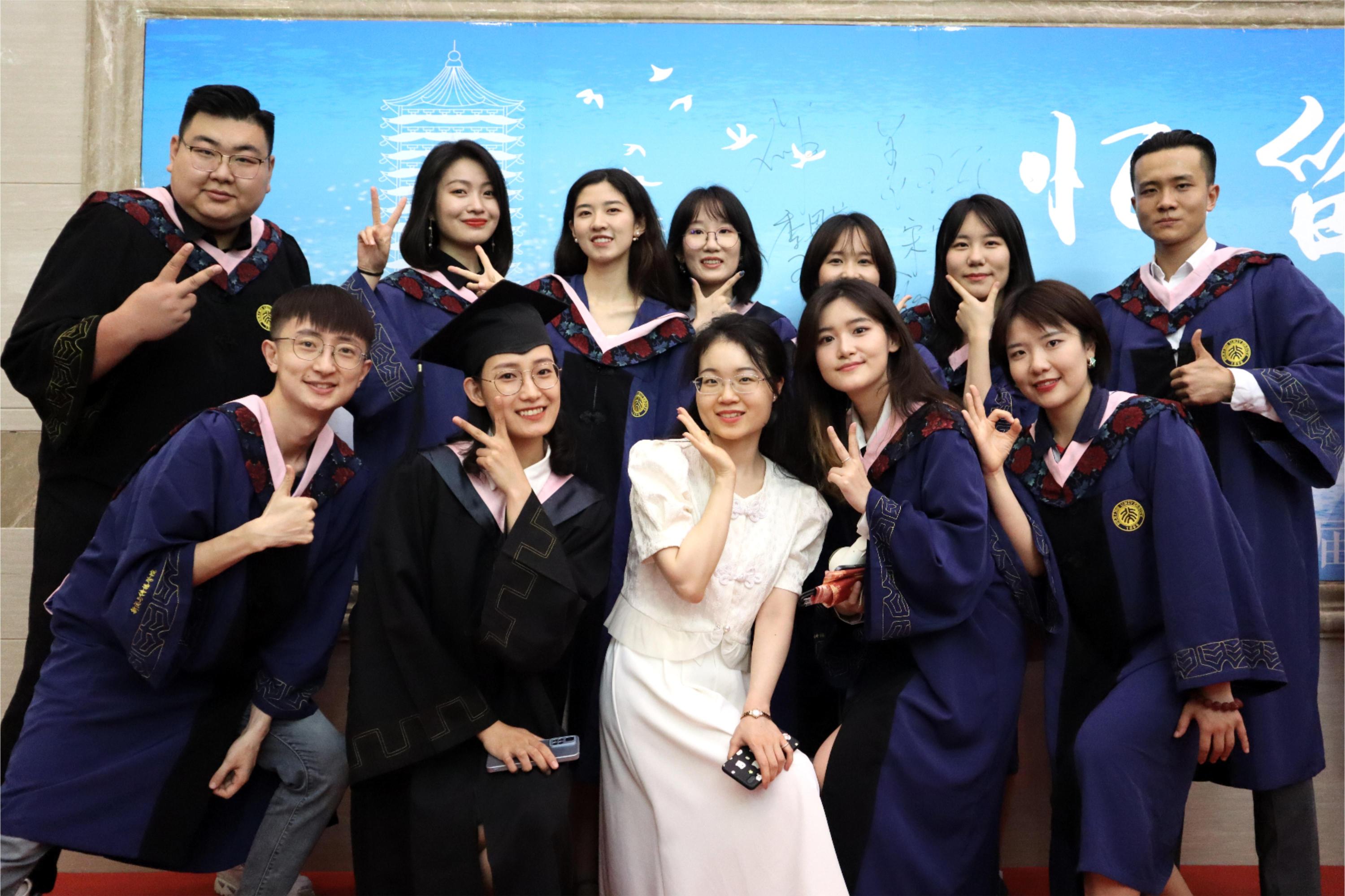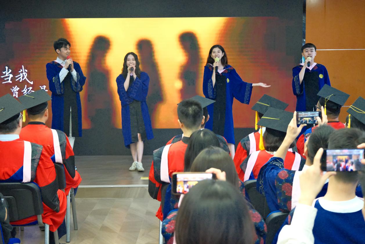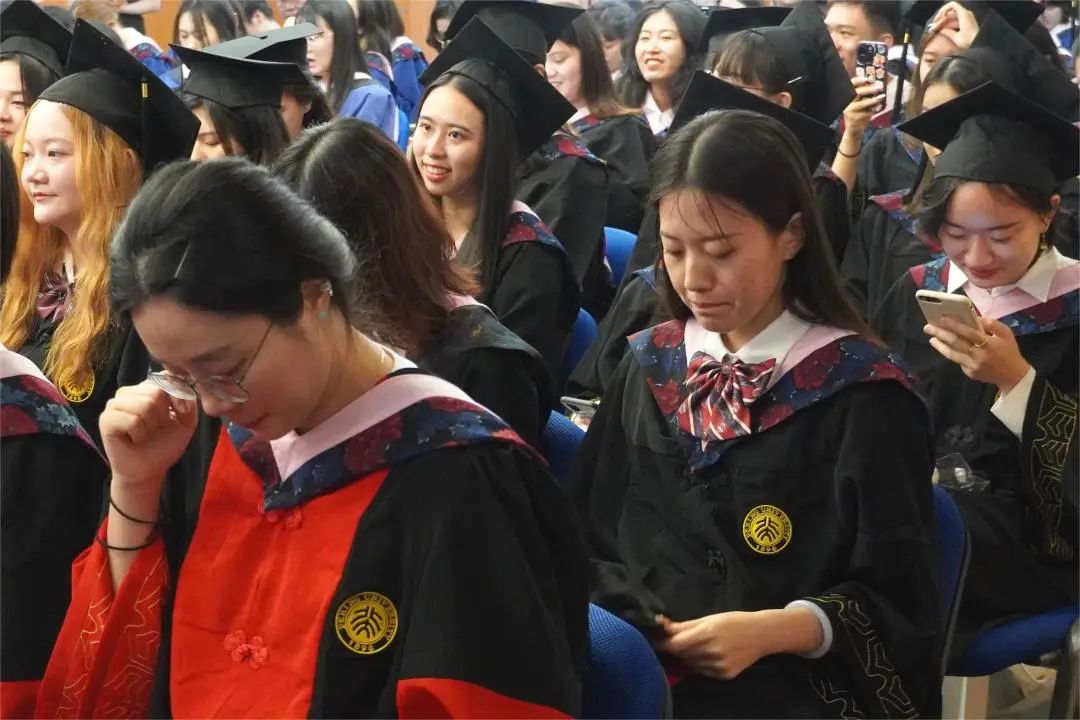 全体师生合唱《燕园情》。“我们来自江南塞北,情系着城镇乡野;我们走向海角天涯,指点着三山五岳。”满怀着对学校和学院的无限留恋,和即将奔赴三山五岳,挥洒青春热血的坚定信念,毕业生们用歌声与燕园告别。