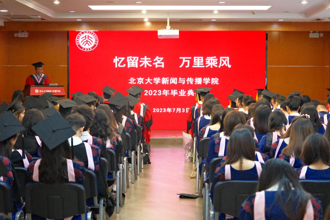 7月3日下午,北京大学新闻与传播学院2023年毕业典礼在蒙民伟楼报告厅举行。新闻与传播学院院长陈刚,党委书记唐金楠,党委副书记卢亮,副院长陈开和、王维佳,程曼丽、陆绍阳、何姝、周忆军、陈汝东、师曾志、张慧瑜、王洪喆、王天夫、刘金河、王玮、高忠欣、张蓉丁、魏波、刘杨、曾育平、逯容如、高锦涛、杨静、赵月、王祯、张冉玥等教职工,院友代表、中央电视台中文国际频道记者李凌菲,以及2023届全体毕业生和部分毕业生家长参加典礼,共同见证新传毕业生们圆满顺利完成学业。典礼由王维佳主持。