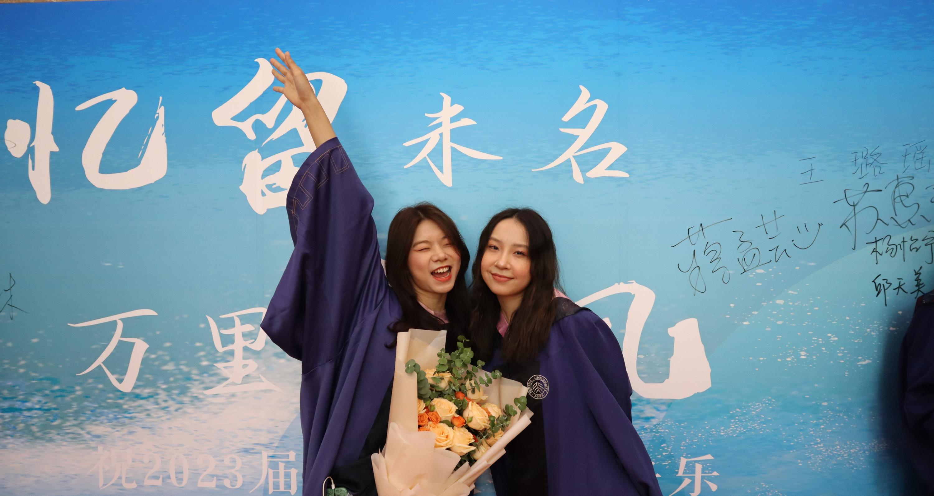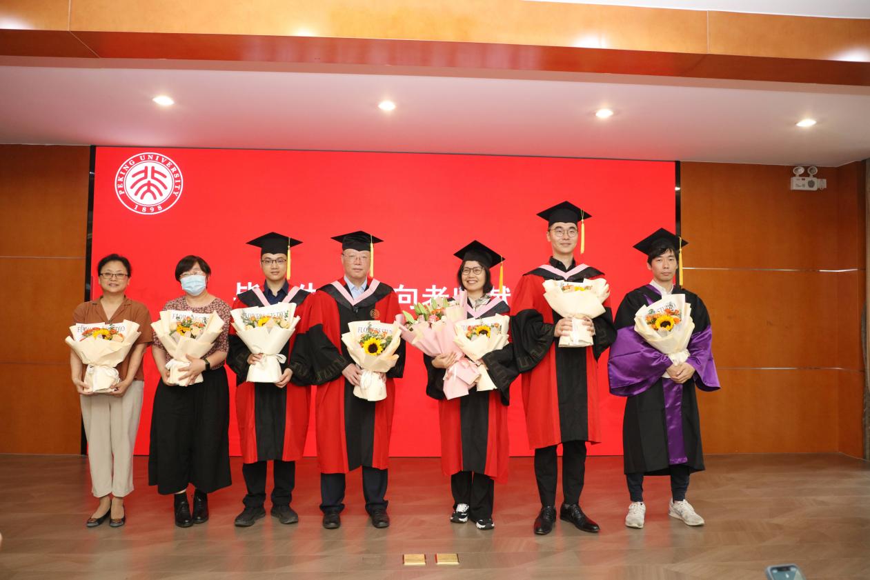 桃李数载,难忘师恩,传道授业,润物无声。在临别之际,毕业生向老师献花,表达对恩师培育之恩的感激。学院也为毕业生精心准备了礼物,将学院的吉祥物句读猫作为留念,寓意北大新传始终为学子们敞开大门,始终是学子们的心之所系。