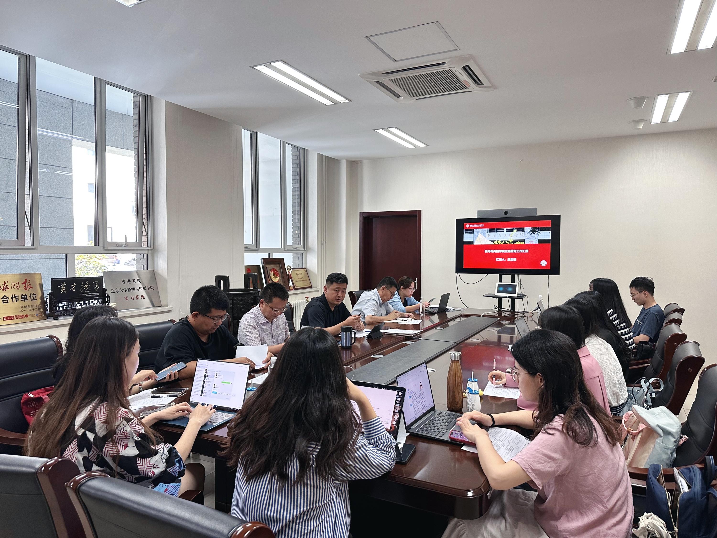9月13日,新闻与传播学院在蒙民伟楼107室召开开主题教育进展情况通报暨党支部书记工作会,学院党委书记唐金楠、院长陈刚、党委副书记卢亮、党委委员徐金灿及全体师生党支部书记出席会议。会议由唐金楠主持。