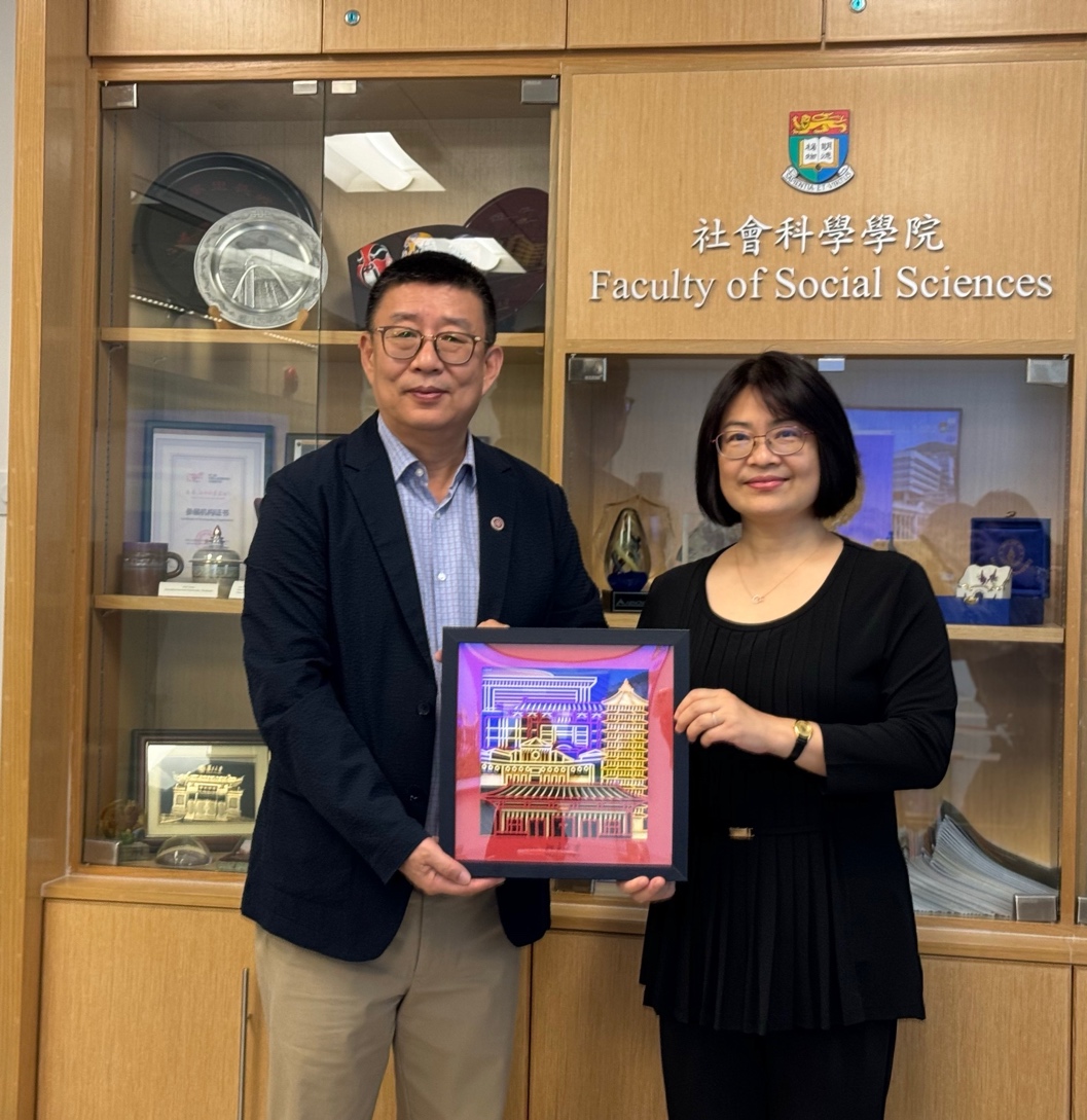 随后,陈刚院长来到香港大学社会科学学院进行拜访,文鸣院长对陈刚教授的来访表示欢迎,并介绍了香港大学社会科学学院的整体情况。陈刚院长也对北京大学新闻与传播学院的发展以及双方正在推动的交流合作进行了介绍。双方均表示要加强联络、增进了解,积极推动双方合作落地落实。