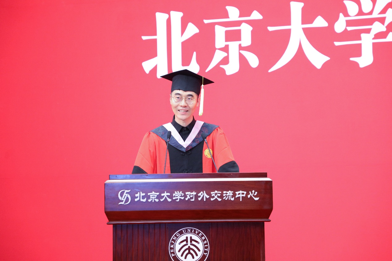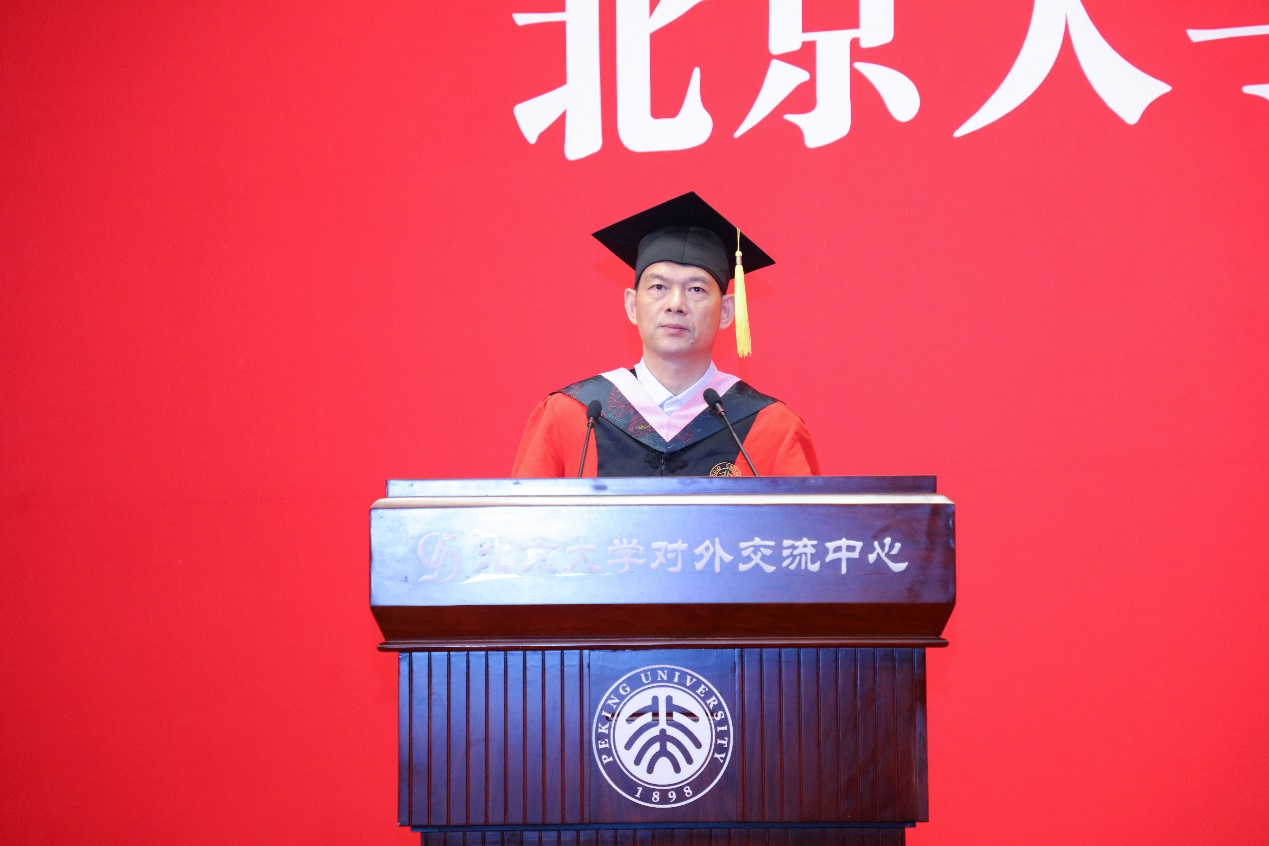 陈刚为毕业生致辞。他呼吁同学们以更长远的时空维度审视人生旅途,将青春的经历视做成长的阶梯,努力探寻自身能力与时代趋势的契合点。谈及历史发展带来的机遇时,陈刚指出,在人工智能重塑生产关系的数字社会发展浪潮中,要准确把握系统性变革所带来的挑战与机遇;在迈向中华民族伟大复兴的征程上,应当以青春力量肩负起强国建设的重任;更要在全球局势风云变幻之际,通过讲好中国故事、深化文明互鉴,为构建人类命运共同体贡献力量。他强调,新闻传播学科始终是推动社会变革的核心力量,北京大学新闻与传播学院的学术积淀,将永远为学子发展提供坚实支撑。最后,他期待大家树立远大志向,不断地提升自己,探索创造性地解决问题的能力,在社会发展的大舞台上,有所建树,有所贡献,不负时代,不辱使命。