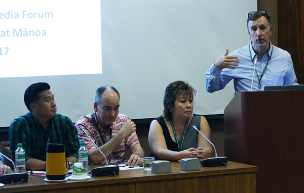 University of Hawai'i at Manoa Student Media Advisor Jay Hartwell introduces the roundtable panel