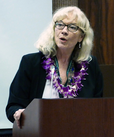 University of Hawai`i at Manoa College of Social Sciences Dean Denise Konan welcomes participants to the 4th Sino-US Media Forum