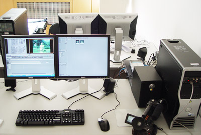 经过数月筹备,新闻与传播学院非线编辑实验室终于在遥感楼东213安家落户,今后这里将是我们师生进行视频剪辑的主要硬件平台。非线编辑实验室位置于遥感东楼213,面积大约50平方米。目前拥有5台专业级图形工作站,可以同时满足5个项目组同时进行视频剪辑的需要。图形工作站采用DELL PRECISION 490机型,CPU为双Xeon双核服务器专用CPU,2G服务器专用内存,拥有强大的数据处理能力。图形工作站上配有专业的Canopus DV Strom XA 非线编辑卡,双液晶显示器,具有卓越的浮点运算能力和优异视频显示效果。除了工作站上250G存储空间之外,还配有一个总容量2.4T磁盘阵列,由一台专门的服务器负责管理媒体资源,以满足视频数据海量存储的需要。非线编辑还配备了一批专业DV摄像机,以及一些数码设备,主要为广播电视新闻专业本科生提供影像录制和编辑教学和实践提供操作平台。