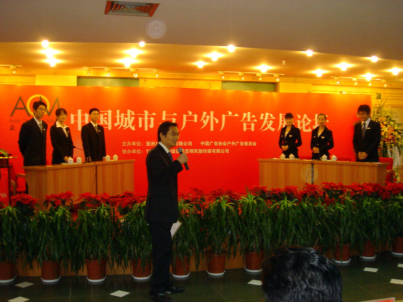 为期一天的中国城市与户外广告论坛由亚洲户外传媒有限公司(Asia Outdoor Media)和中国广告协会户外广告委员会共同主办。目的在于借助第十三届中国广告节即将在昆明举办的良好契机,通过广告学者、广告业经营者、政府管理者的多方交流探讨,推动中国户外广告行业的规范和健康发展。北京大学新闻与传播学院副院长陈刚教授,上海师范大学新闻与传播学院金定海教授等知名广告业学者受邀参加,在论坛中发表了自己的看法。