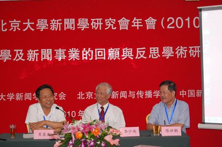 8月20日上午,由北京大学新闻学研究会(以下简称新闻学研究会)、北京大学新闻与传播学院、中国新闻史学会共同主办的“北京大学新闻学研究会年会(2010)暨东亚新闻学与新闻事业的回顾与反思学术研讨会”在英杰交流中心举行。参加研讨会的专家学者有新闻学研究会学术总顾问、中国人民大学荣誉教授、中国新闻史学会名誉会长方汉奇,中国新闻史学会部分在京常务理事及特邀理事,北京大学新闻与传播学院的老师、研究生,以及“北京大学新闻学研究会第二届全国新闻史论师资特训班”的全体学员。